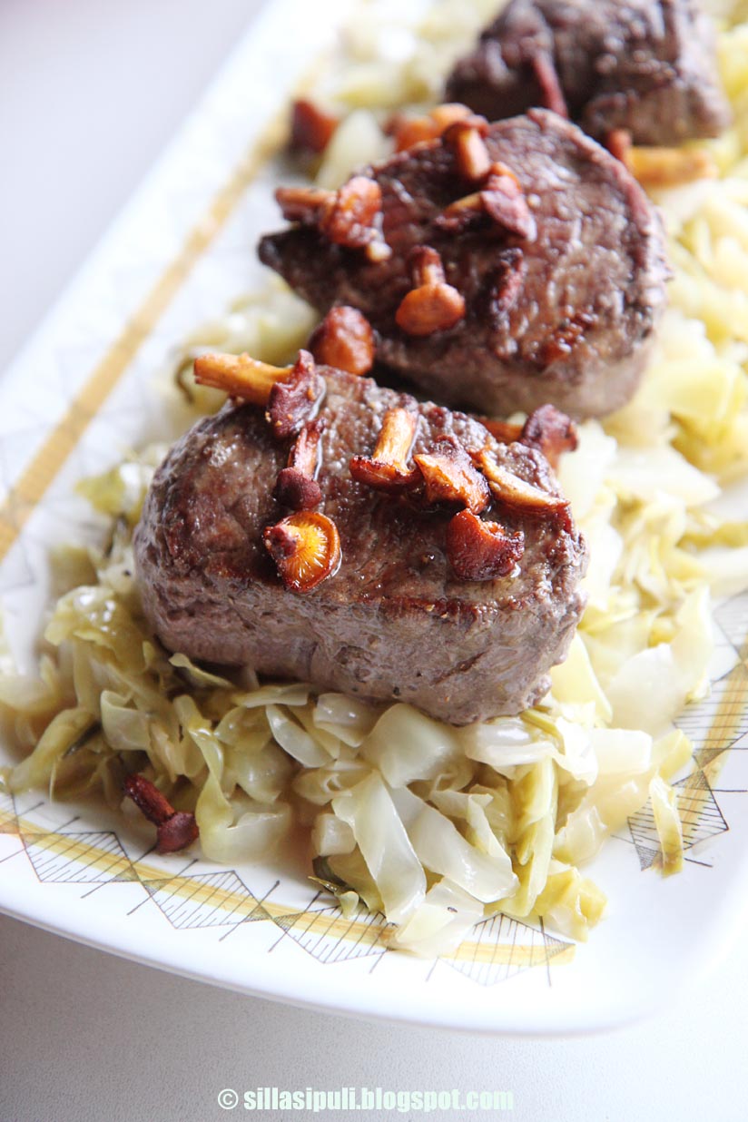 Kaalilisäke oli aika miedon makuinen ja sopi oikein hienosti vahvan lihan kanssa. Valmistus oli suht nopeaa ja ylihelppoa.